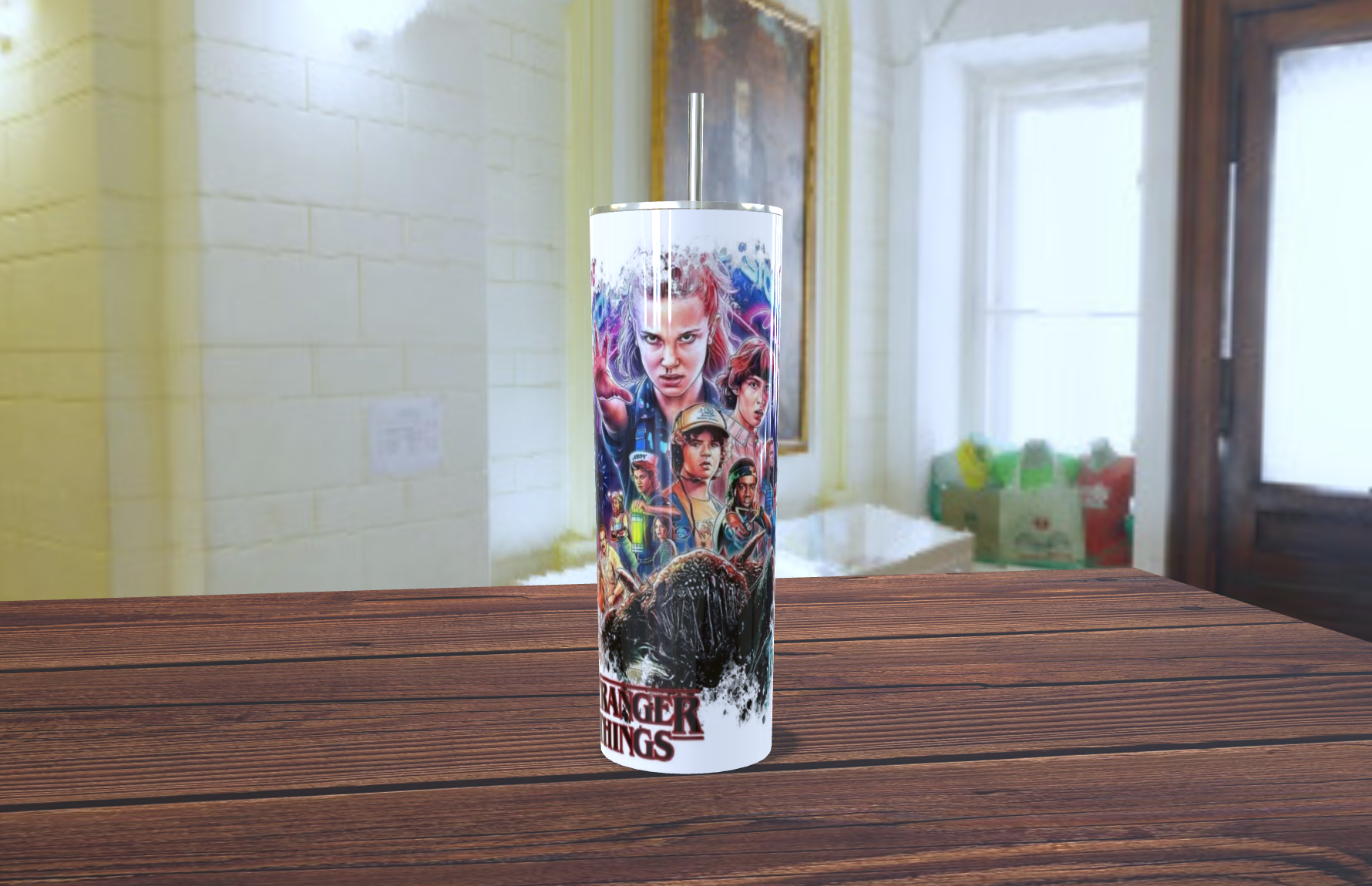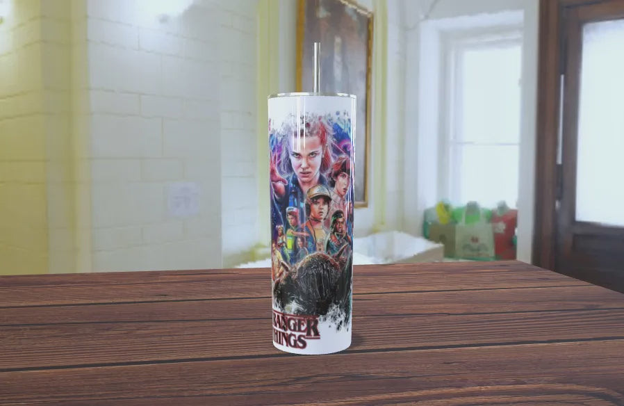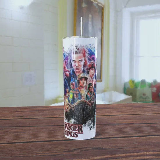The power is in your hands! This high-quality stainless steel tumbler celebrates the central heroine of Stranger Things, Eleven, along with her friends and allies in the fight against the Upside Down.