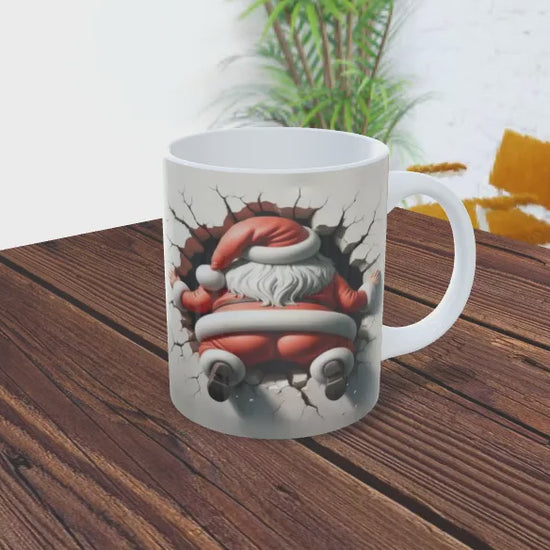 Agrega un toque divertido y festivo a tus mañanas con esta original taza de Navidad. Presenta un diseño 3D del rostro de Santa Claus saliendo a través de una pared agrietada, creando un efecto realista y lleno de alegría. Perfecta para disfrutar tu café, chocolate o té durante la temporada navideña.