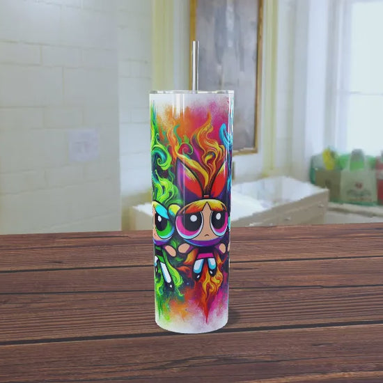 💥 Vaso Tumbler "Powerpuff Girls: Estallido Pop Art" - ¡Azúcar, Flores y Colores Psicodélicos! 🌈💖