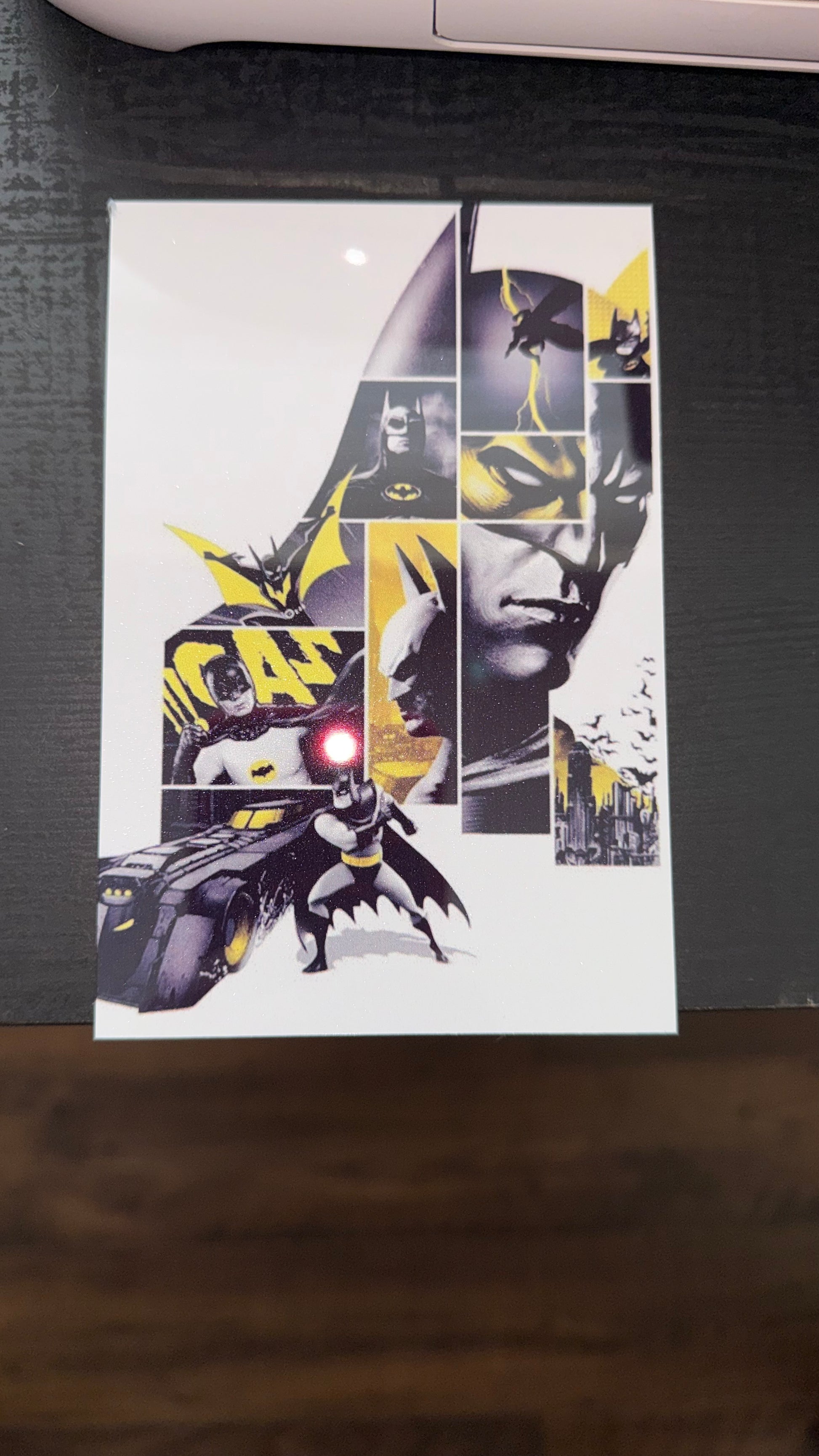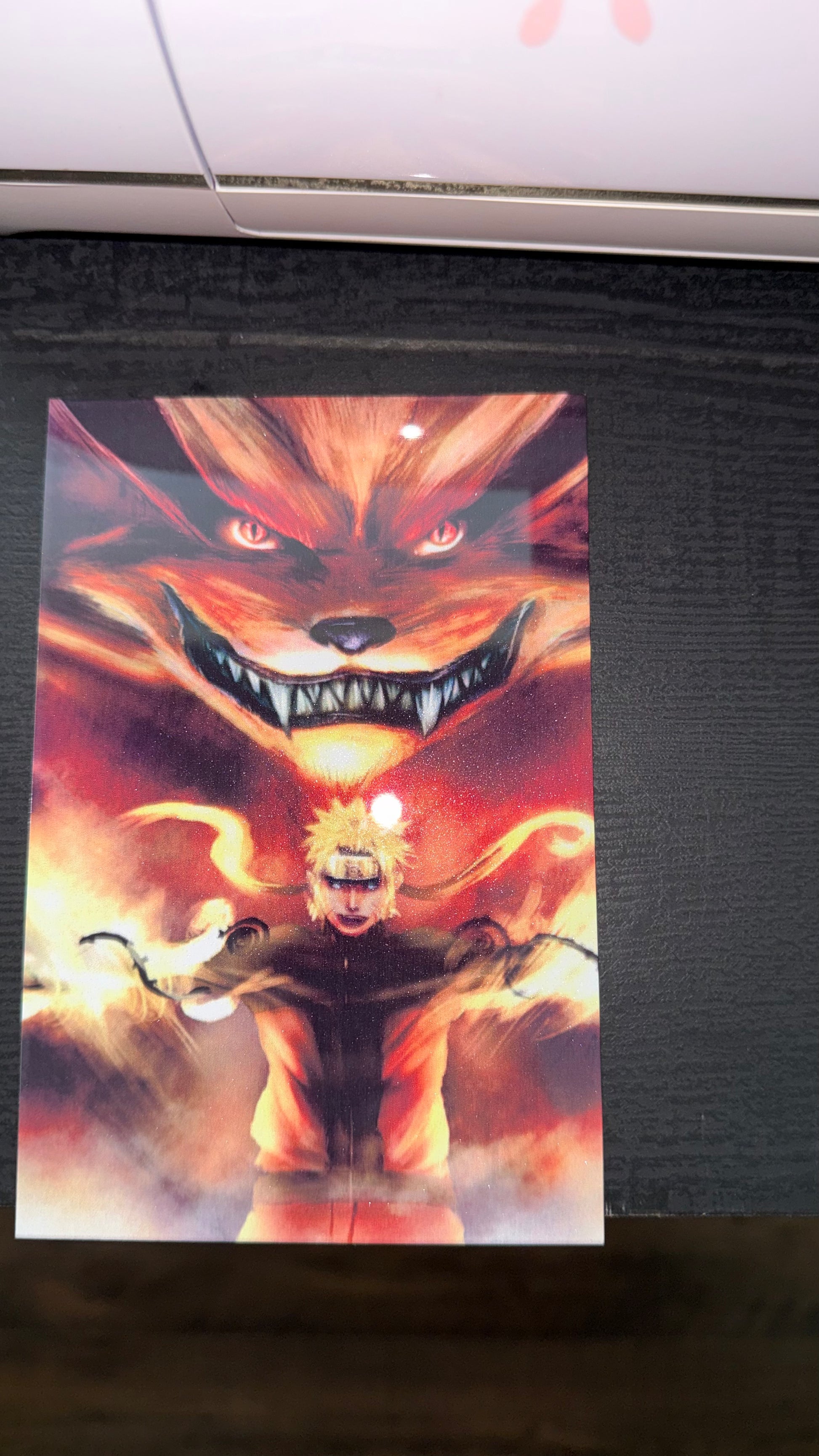 Héroes de Anime y Cómics: Representaciones de alta energía de Naruto (solo y con Sasuke) que capturan momentos intensos de sus batallas, y un mosaico estilizado de Batman en tonos amarillos y negros.