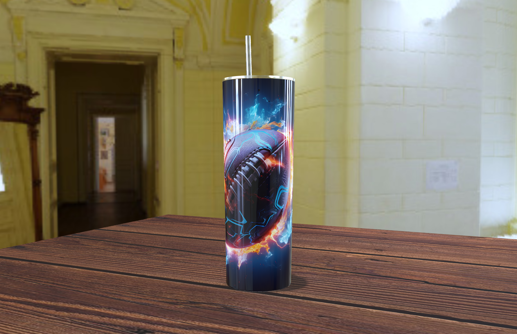 Este tumbler deportivo destaca un diseño dinámico inspirado en el mundo del fútbol, con una imagen vibrante que refleja energía, movimiento y espíritu competitivo. Perfecto para fanáticos del deporte, su estilo moderno combina perfectamente con cualquier ocasión.