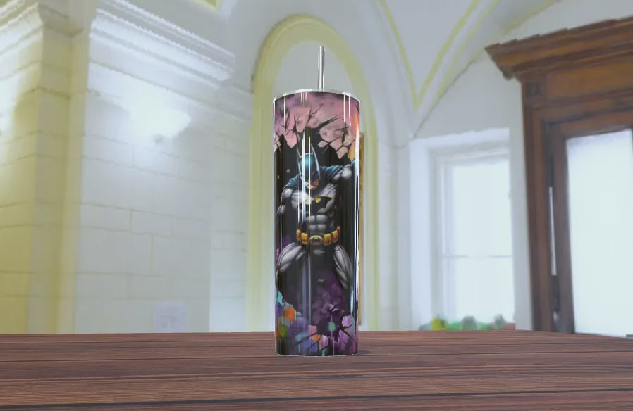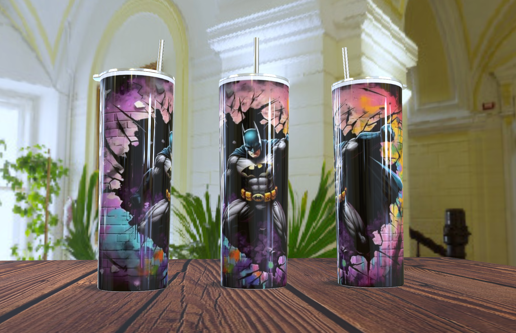 Este tumbler inspirado en Batman combina elegancia y fuerza con un diseño oscuro y llamativo perfecto para cualquier fan del héroe de Gotham. Su arte detallado destaca el icónico símbolo del murciélago, creando un look moderno y poderoso.