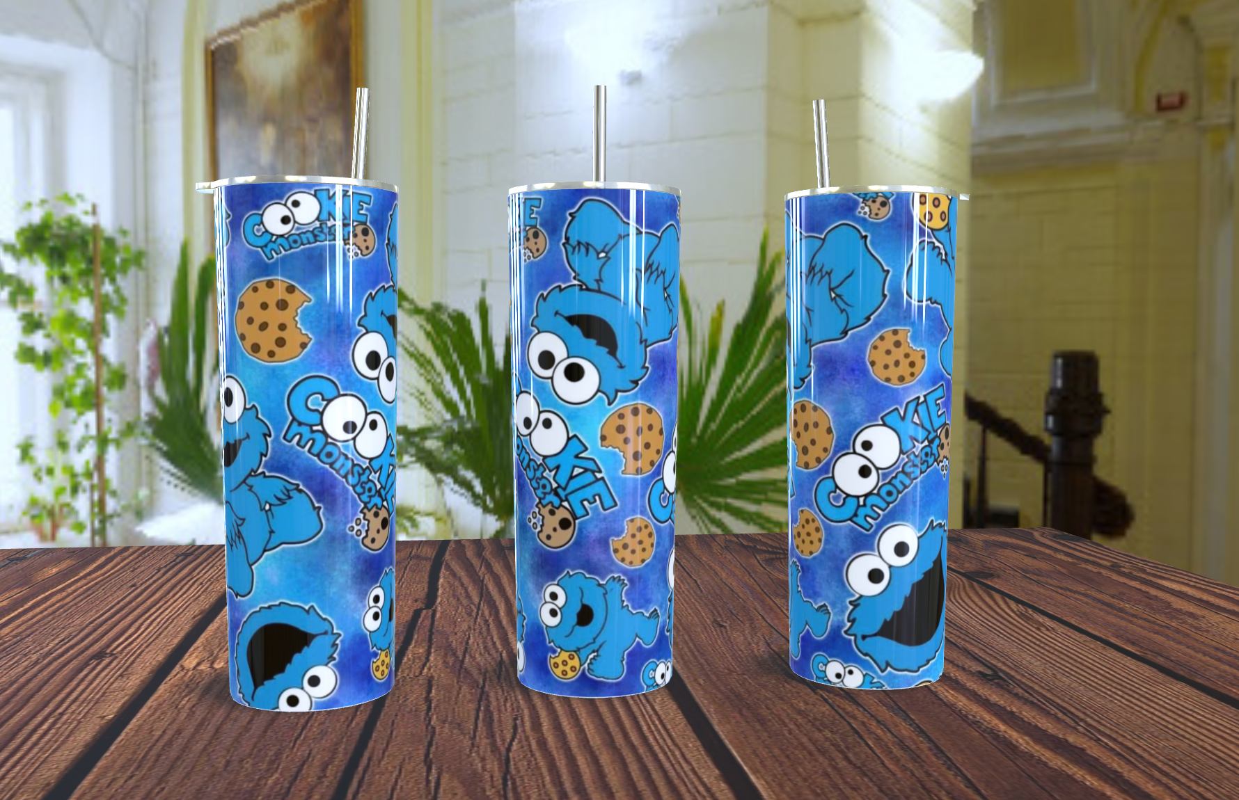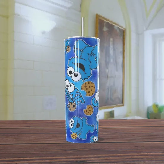 Disfruta tus bebidas favoritas con este encantador tumbler de acero inoxidable, decorado con un alegre personaje azul amante de las galletas. Su diseño lleno de energía y diversión lo convierte en el compañero perfecto para el día a día.